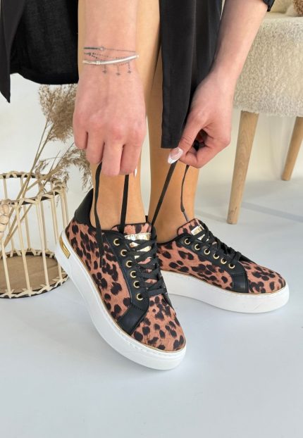 Kity Leopar Saten Bağcıklı Spor Ayakkabı