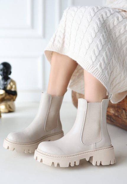 Ninle Bej Cilt Topuklu Bot