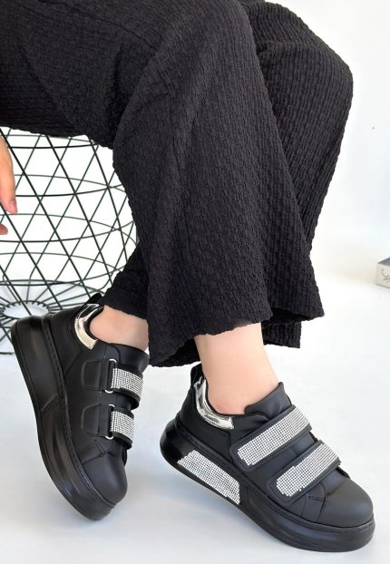 Nino Siyah Cilt Cırt Cırtlı Spor Ayakkabı