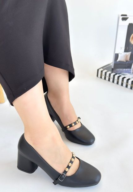 Tino Siyah Cilt Topuklu Ayakkabı