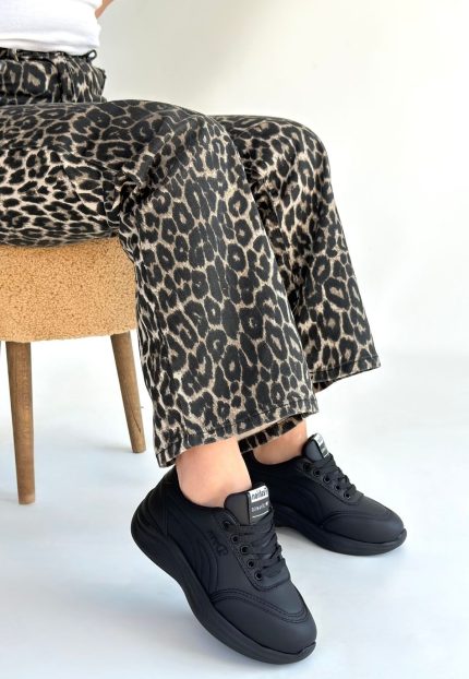 Yejja Siyah Cilt Bağcıklı Spor Ayakkabı