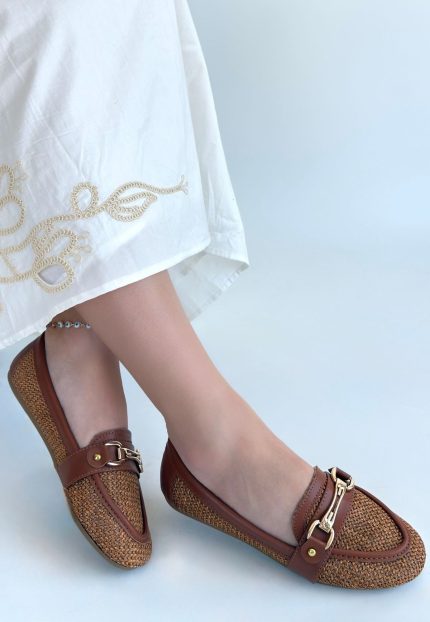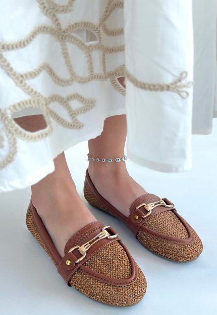 Rives Mavi Cilt Hasır Dokumalı Babet Ayakkabı