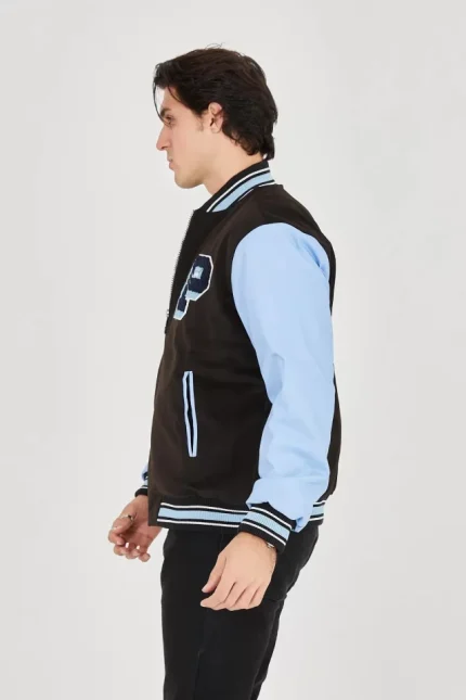 Erkek İçten Elyaf Ve Astarlı Kolları Suni Deri Ceket – Mavi
