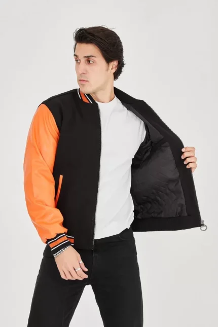 Erkek İçten Elyaf Ve Astarlı Kolları Suni Deri Ceket – Turuncu