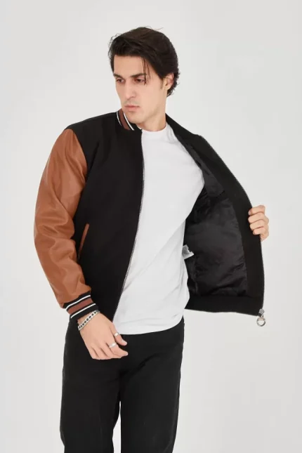 Erkek İçten Elyaf Ve Astarlı Kolları Suni Deri Ceket – Kahverengi