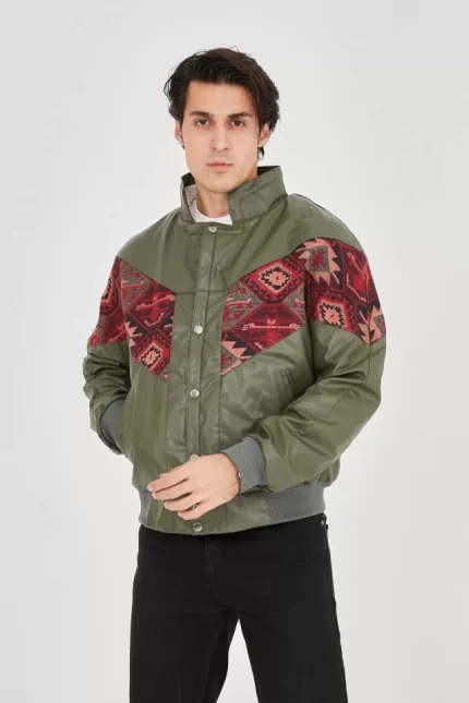 Erkek İçi Astarlı İçten Yaka Kısmı Peluşlu Suni Kumaş Vintage Ceket – Haki