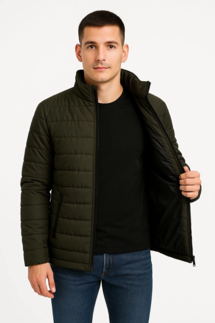 Erkek Bomber Mont Ceket – Su İtici Kumaş, Kapitone Astarlı, Fermuarlı, Kışlık – Haki