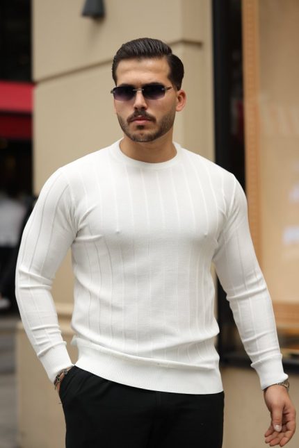 Erkek Fermuarlı Bisiklet Yaka Dokulu Uzun Kollu Triko