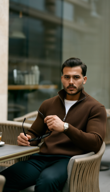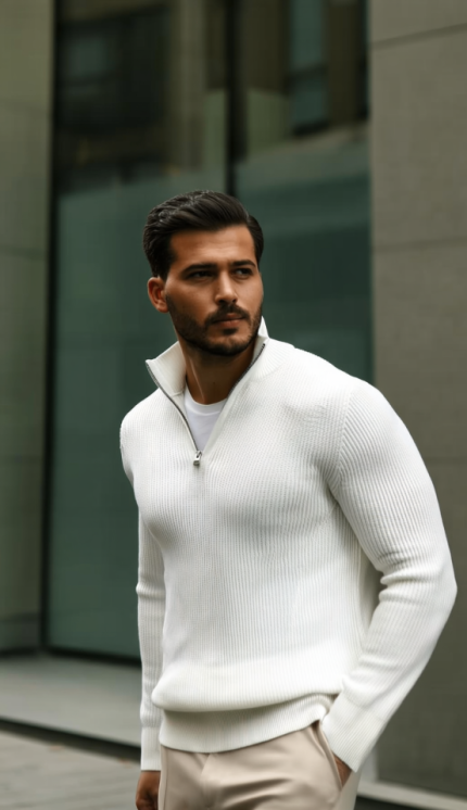 Erkek Balıkçı Zip Yaka Uzun Kollu Triko