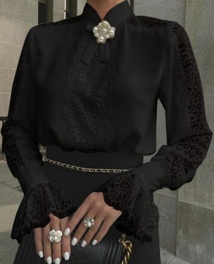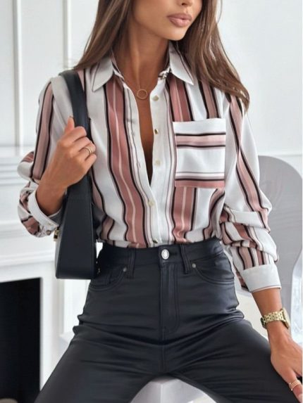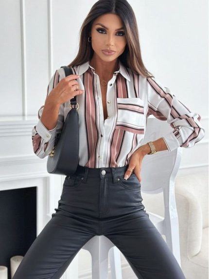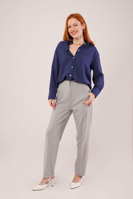 Kadın Uzun Kollu Dokuma Kumaş Klasik Gömlek