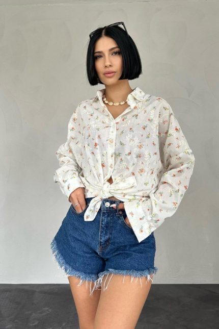 Orijinal fiyat: ₺742,40.₺668,16Şu andaki fiyat: ₺668,16.Kadın Uzun Kol Cep Detay Dijital Baskılı Mosskrep Kumaş Gömlek