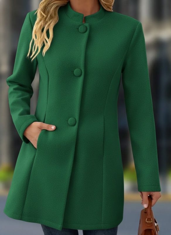 Kadın Uzun Kollu Yakalı önden Düğmeli Welsoft Kaban